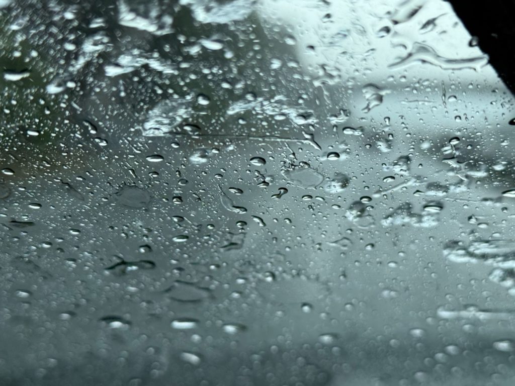 信越道を走っていて、混雑してきて、渋滞のテールランプが見えてきたら、雨が凄くなった!