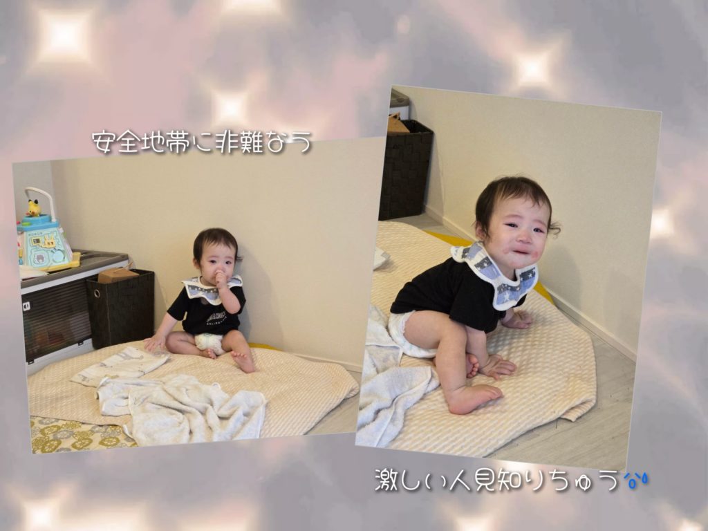 結局、離乳食はあげられず、仕方ないのでミルクだけ飲ませたのですが、お腹がいっぱいになってもあまり機嫌は直らずで。ただ、この円形のお布団の上は安心するみたいなので、私は少し遠くから様子を見ていましたよ。