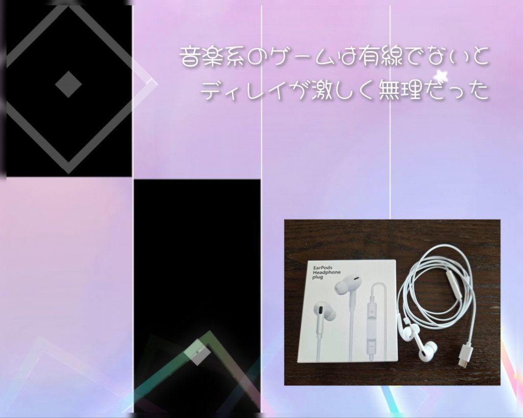 ただ…音ゲーはワイヤレスイヤホンだと物凄いディレイが生じて…。