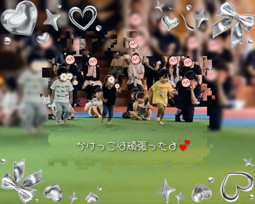 ただ、かけっこはとっても元気よく返事もして、思いっきりフライング状態で走って楽しそうにゴールできました🙆
