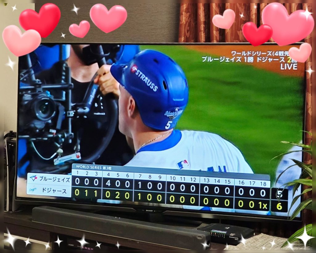 長かった!! ワールドシリーズ真っ只中ですが、やりましたねドジャース!延長18回でようやく勝ちました!! 朝9時から見ていて、今16時ですよ!何という長さ。 大谷選手も凄かったですね、9連続出塁って!これ、破れないでしょ(笑)ホームラン2個を含め2安打の後、4宣告敬遠にファーボールですもの。ありえない~♪ 本当に凄かった、おめでとうございます! 今回ずっとポストシーズンから見ていますが、ドジャースにおける日本人選手の勢いが凄いということもありますが、精神的に非常に良い嬉しい日々です💕 楽しかった! By matiy38 | 2025-10-28 | その他イベント | ← 引っ越し終了 3歳のお誕生日 →