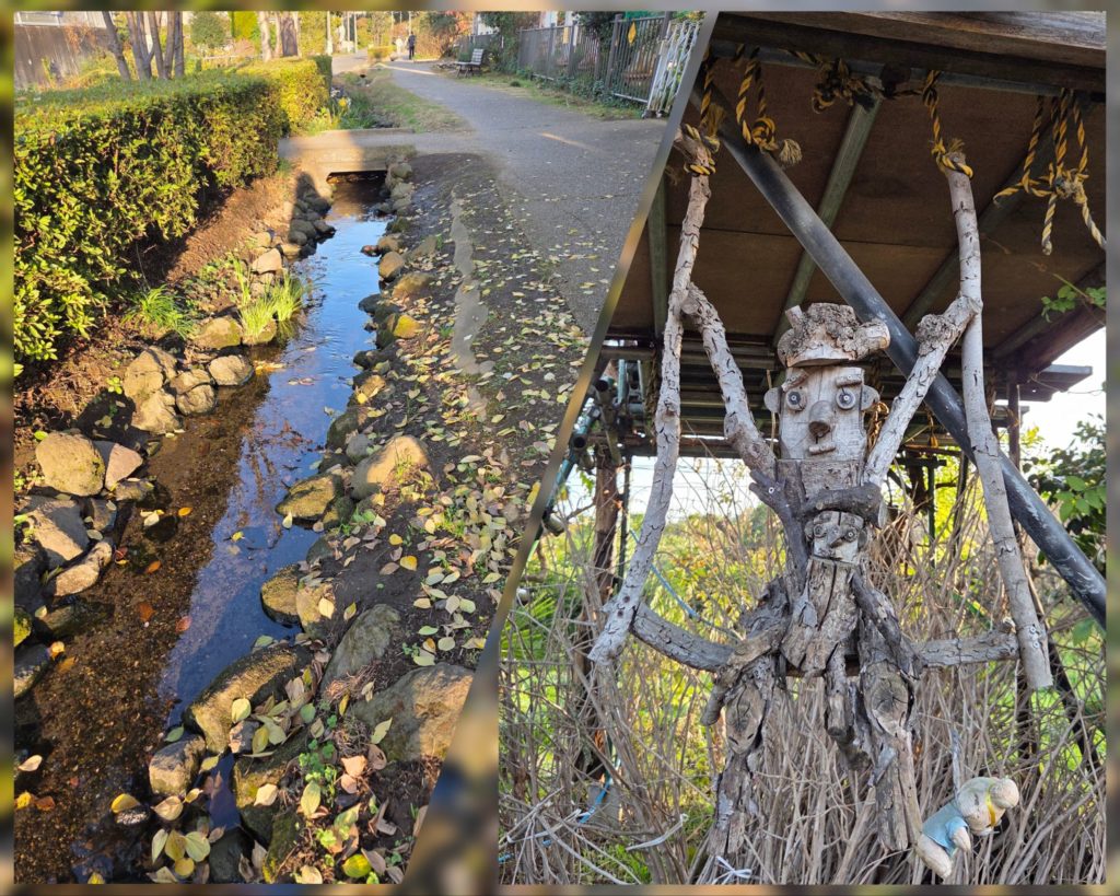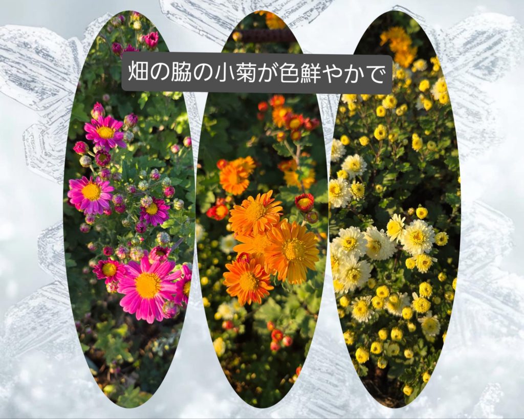 散歩途中にこんなオブジェを見つけたり、横浜とはいえ田舎なもんで畑も多く、道沿いには色とりどりの小菊が咲いていました。