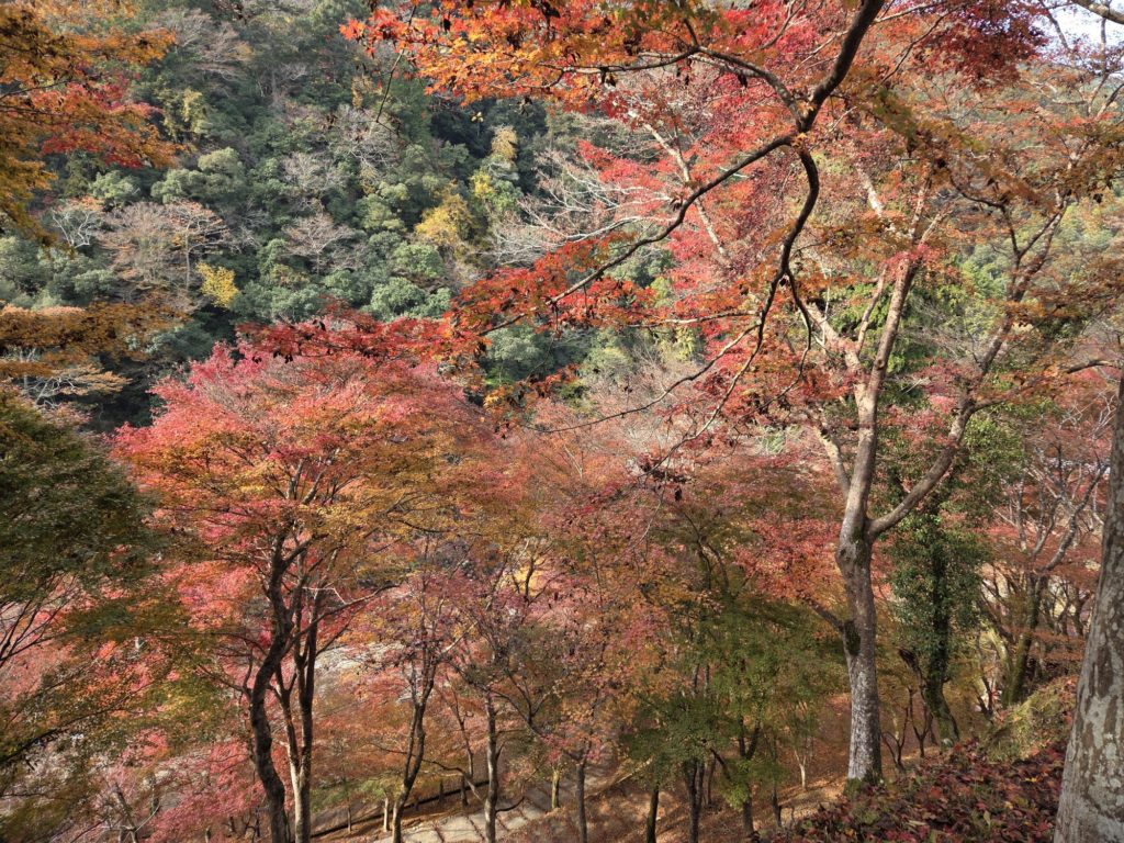 階段はかなりきつくて息切れしましたが、それでも途中に見える紅葉が本当に美しくて、しばし立ち止まりながら写真を撮ったりしながらなんとか登って行きました。