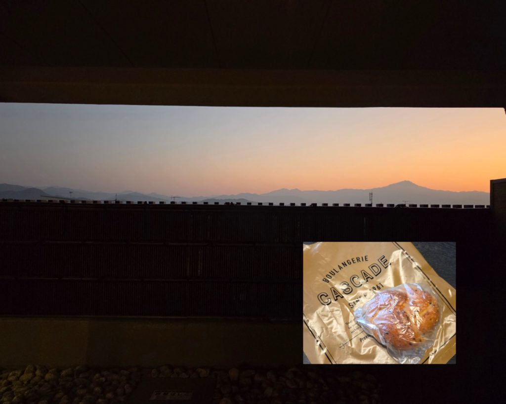 露天風呂に入って、朝食は部屋で簡単に珈琲とパンをいただき少しゆっくり。でも、これからひと騒動がありました…