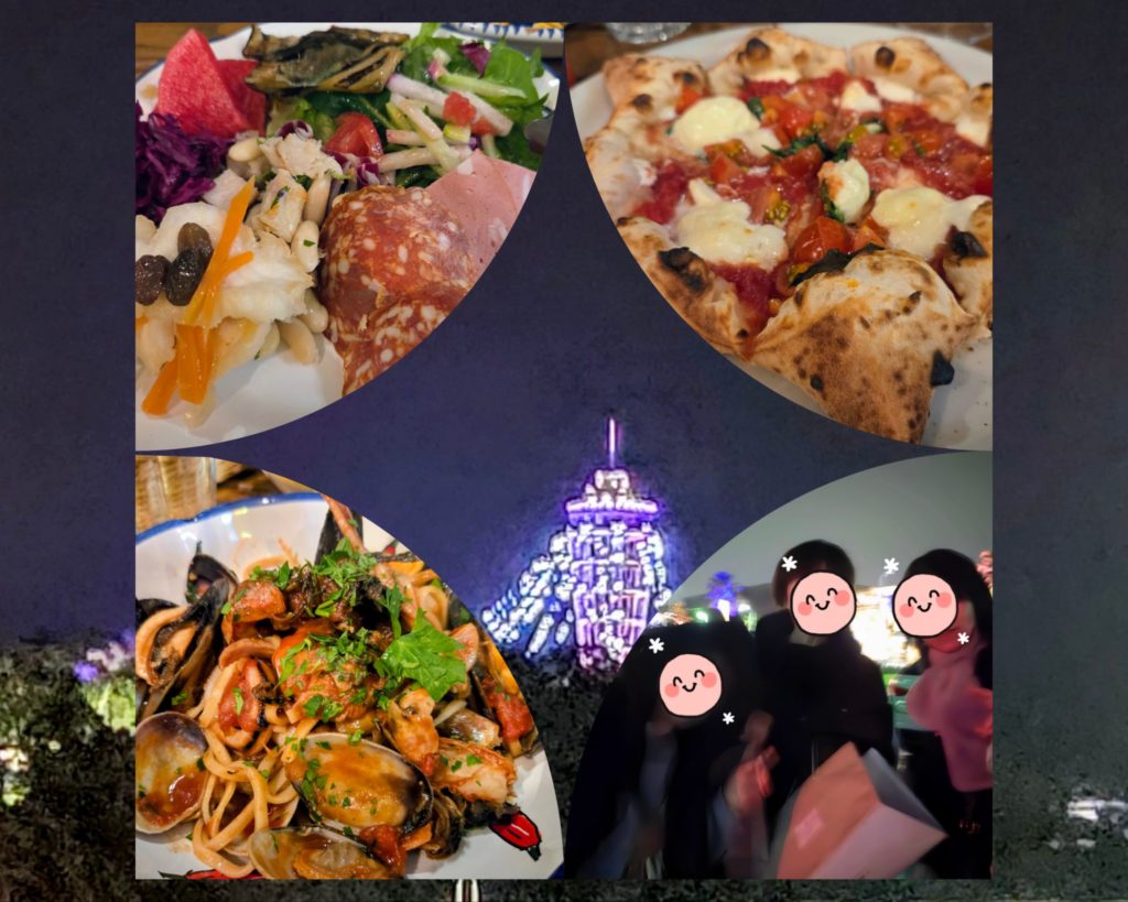 友が予約してくれた江の島のイタリアンで5時に待ち合わせ。寒いし夜だからと車で移動したのですが、途中混雑はしていたけど父とよく通った道で、偲びながらドライブを楽しみました。