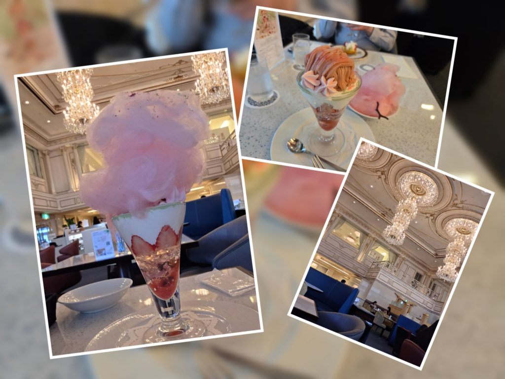 私は4月末までの春の桜のフロレゾンパフェをいただきましたが、上には満開の桜をイメージした綿菓子がのっていて、2層になっている中身はどちらも味、食感そして香りまで春らしいパフェに仕上がっていました。大満足ですw